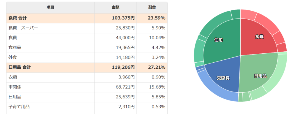 の4つに分けてそれぞれの支出がどのくらいかかっているはは毎月確認しています。