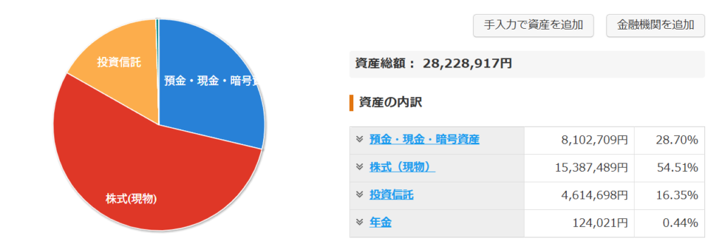 メイン資産は株式が中心となっています。