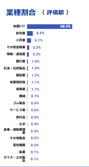 株式部分は米国ETFが約70%、その他は日本株の高配当銘柄が中心です。