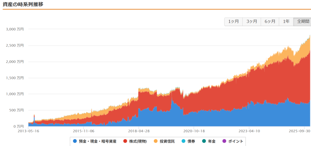 ここ数年は株価の上昇にあやかりまして年間300万円ほど資産増加しています。