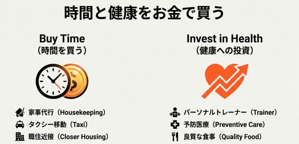 • 家事代行や時短家電を導入して、自分の「時間」を作る。