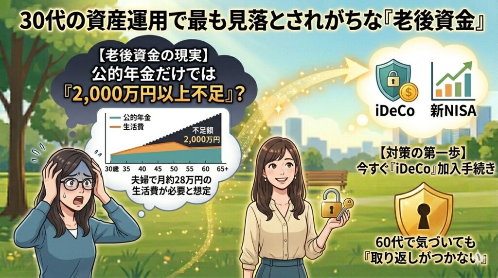 30代から老後資金を準備し始めないと、60代になって「足りない」と気づいても取り返しがつきません。