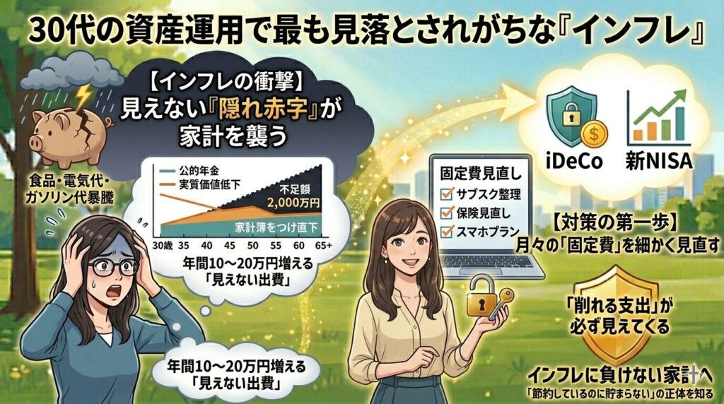 光熱費や通信費の値上がりも合わせると、何もしていないのに年間10〜20万円以上の「隠れ赤字」が家計に忍び込んでいるのです。