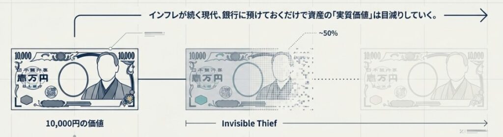 インフレが続く現代では、銀行に預けておくだけで資産の実質価値は目減りしていきます。