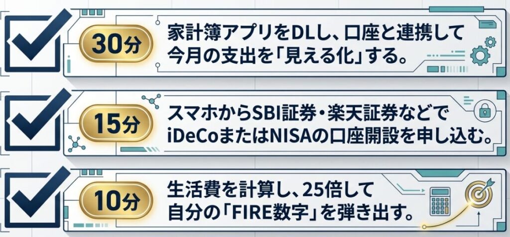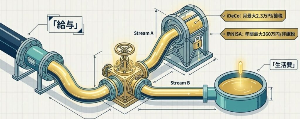 私が実践しているのは「給与日に自動的にiDeCoとNISA口座へ振り替え」という仕組みです。手元に来る前に投資に回してしまえば、使ってしまうことはありません。