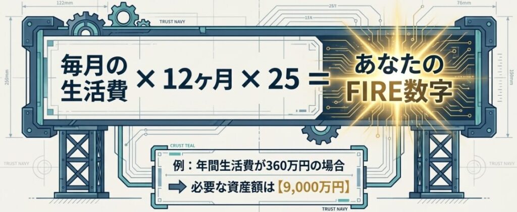 FIRE(Financial Independence, Retire Early)の達成に必要な資産額は、「年間生活費の25倍」と言われています(4%ルール)。