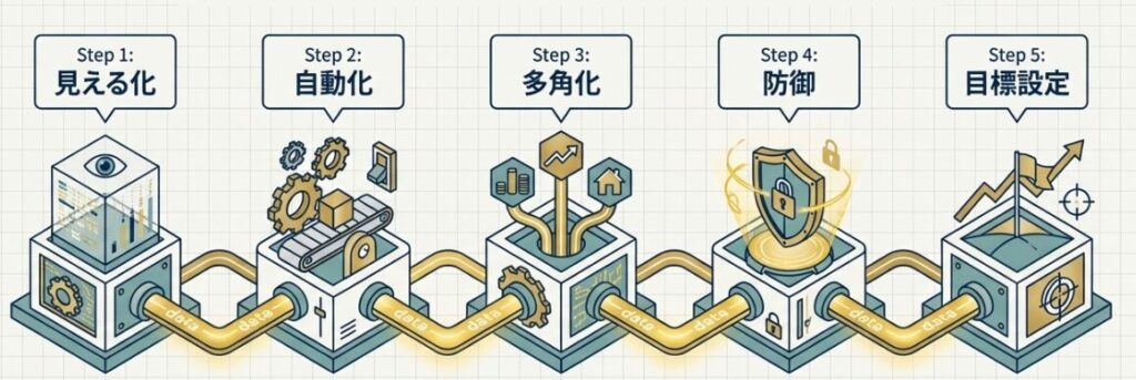 この記事では、同じ悩みを抱える30代の方に向けて、私が実践してきた資産形成の5ステップをお伝えします。