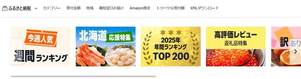 2023年に参入したAmazonふるさと納税は、「トクベツな寄付額の返礼品」という独自企画で他サイトより寄付額が安い返礼品を掲載していることがあります。