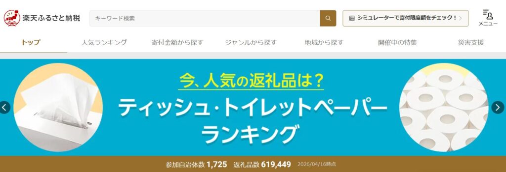 楽天ふるさと納税は参加自治体数・返礼品数ともに国内最大級。