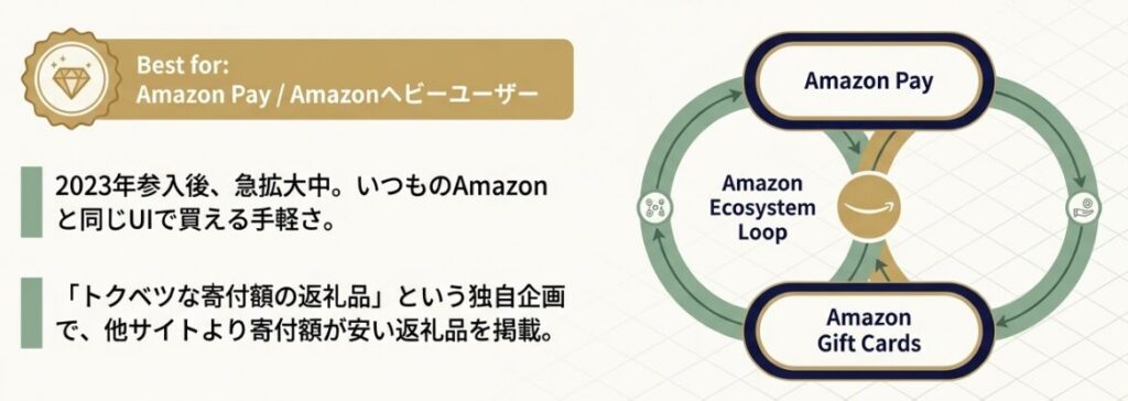 - Amazonヘビーユーザー → Amazonふるさと納税
