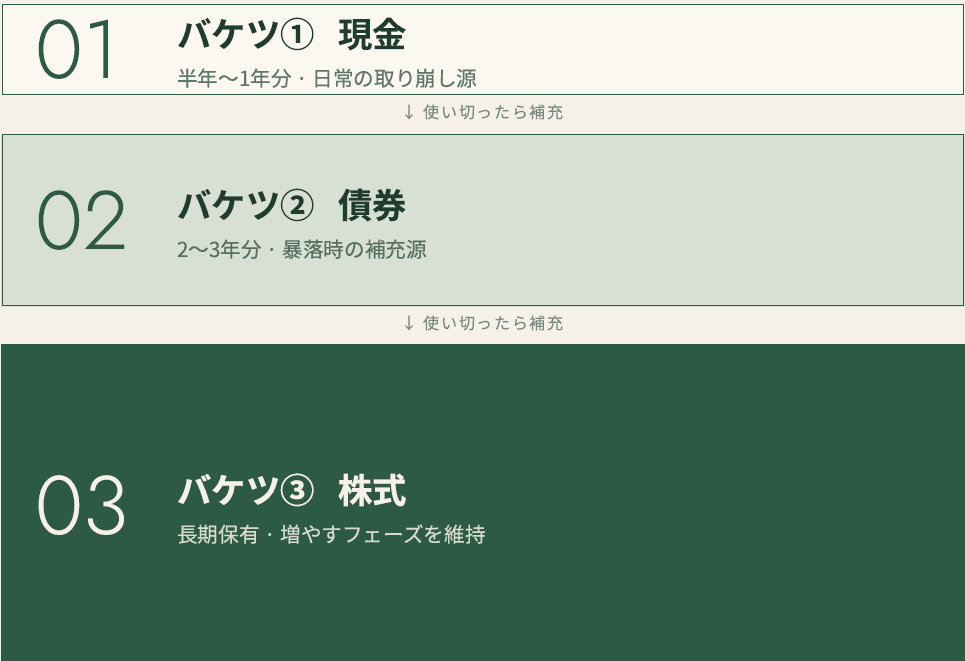 - ✅ 三層バケツ戦略で、感情に左右されない仕組みをつくる