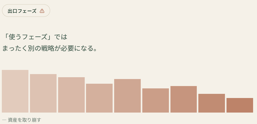 お金を「増やすフェーズ」から「使うフェーズ」に切り替えるとき、まったく別の戦略が必要になってくるんです。