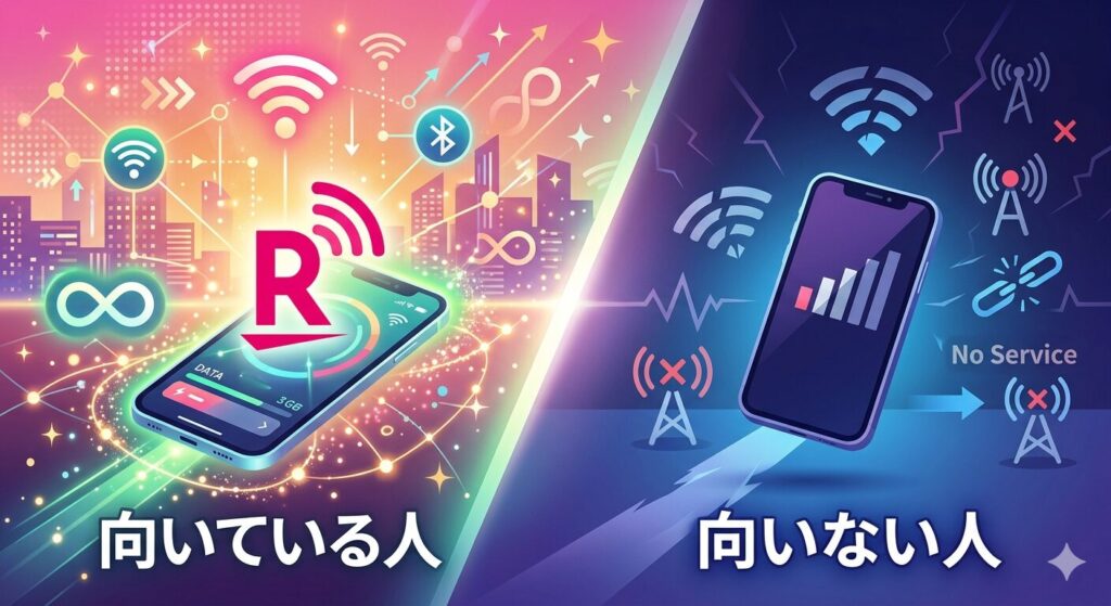 正直に言います。楽天モバイルは「最安」である一方、向いている人と向いていない人がはっきり分かれるサービスです。